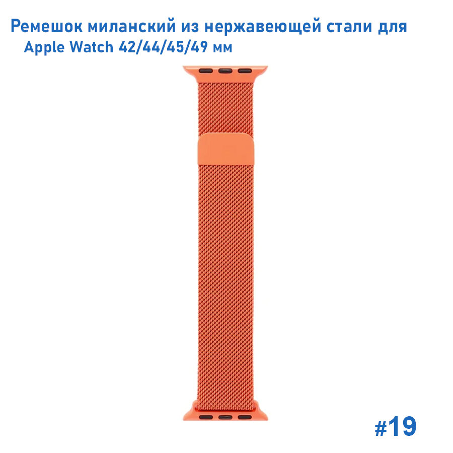 Ремешок миланcкий из нержавеющей стали для Apple Watch 42/44/45мм (19), оранжевый, на магните