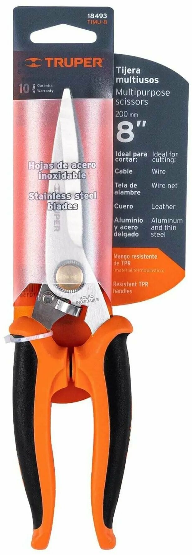 Ножницы универсальные 200мм, лезвие из нержавеющей стали. Truper TIMU-8 18493