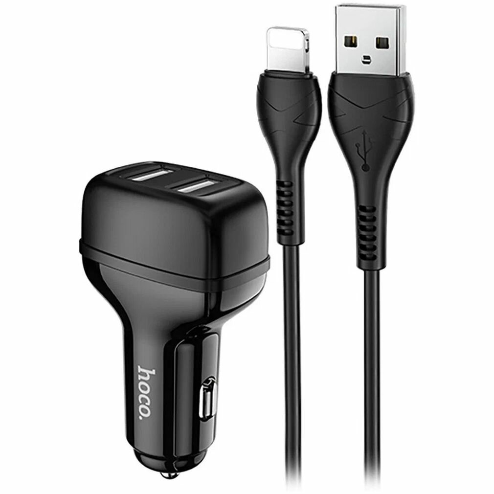 Купить Автомобильное зарядное устройство HOCO Z36 Leader, 2xUSB с Кабелем USB - Lightning, 2.4A, черный