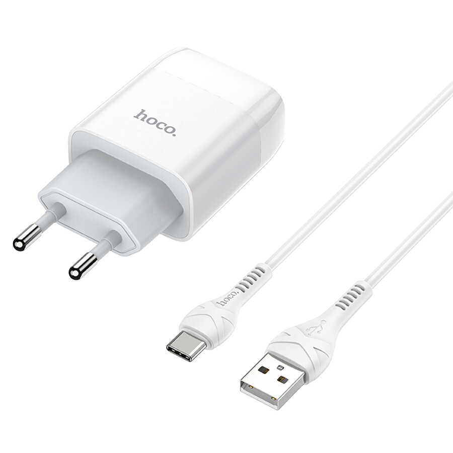 Сетевое зарядное устройство (СЗУ) Hoco C72A (USB) + кабель Type-C, 2.1 А, белый