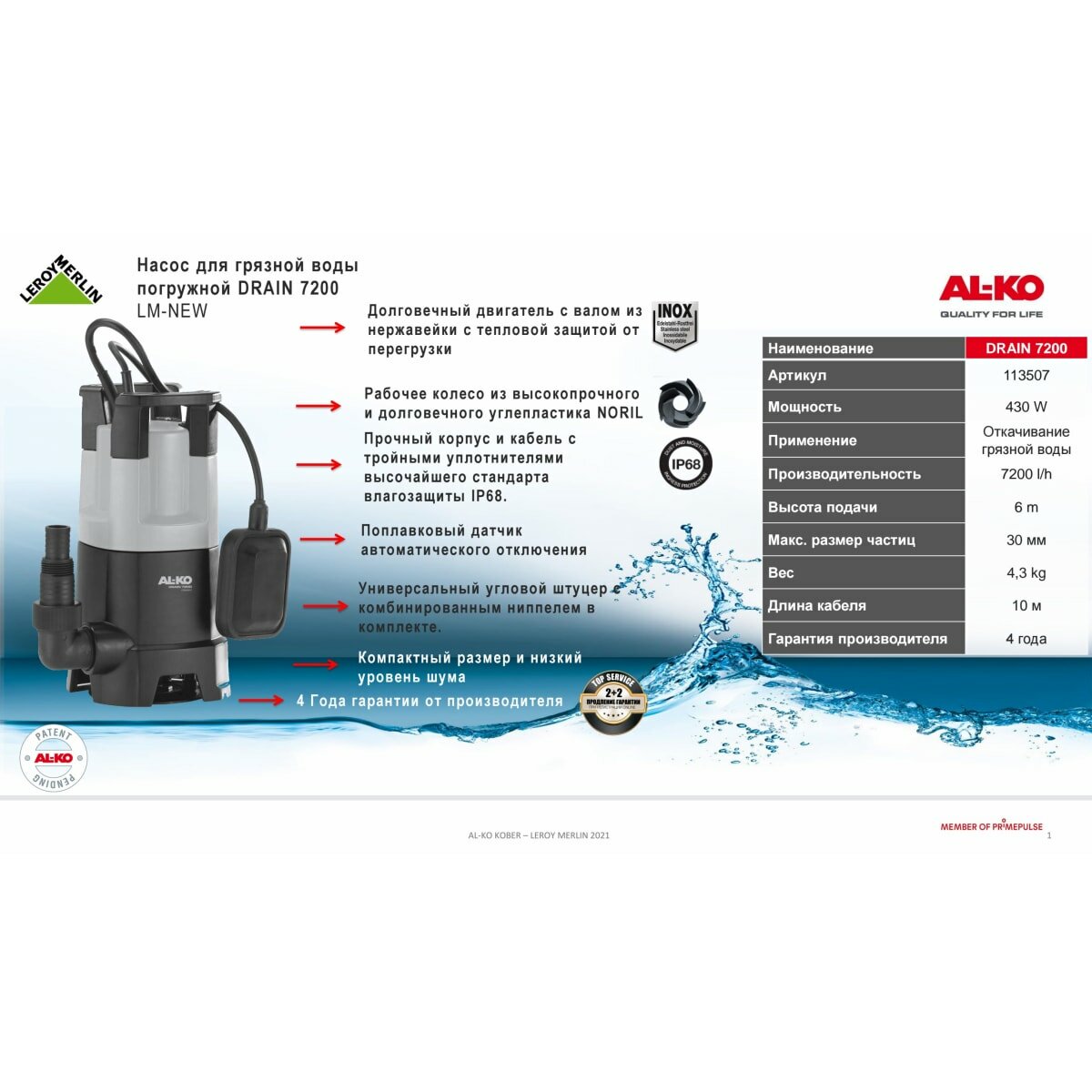 Погружной насос дренажный AL-KO Classic Drain 7200 интересное: