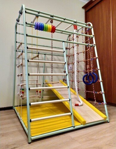 | В комплекте | веревочная лестница, гимнастические кольца, горка, канат, качели, мат, сетка для лазания, тарзанка, трапеция |