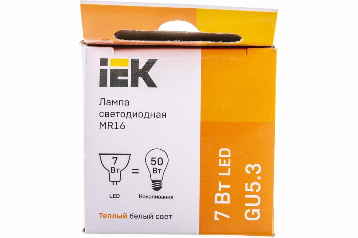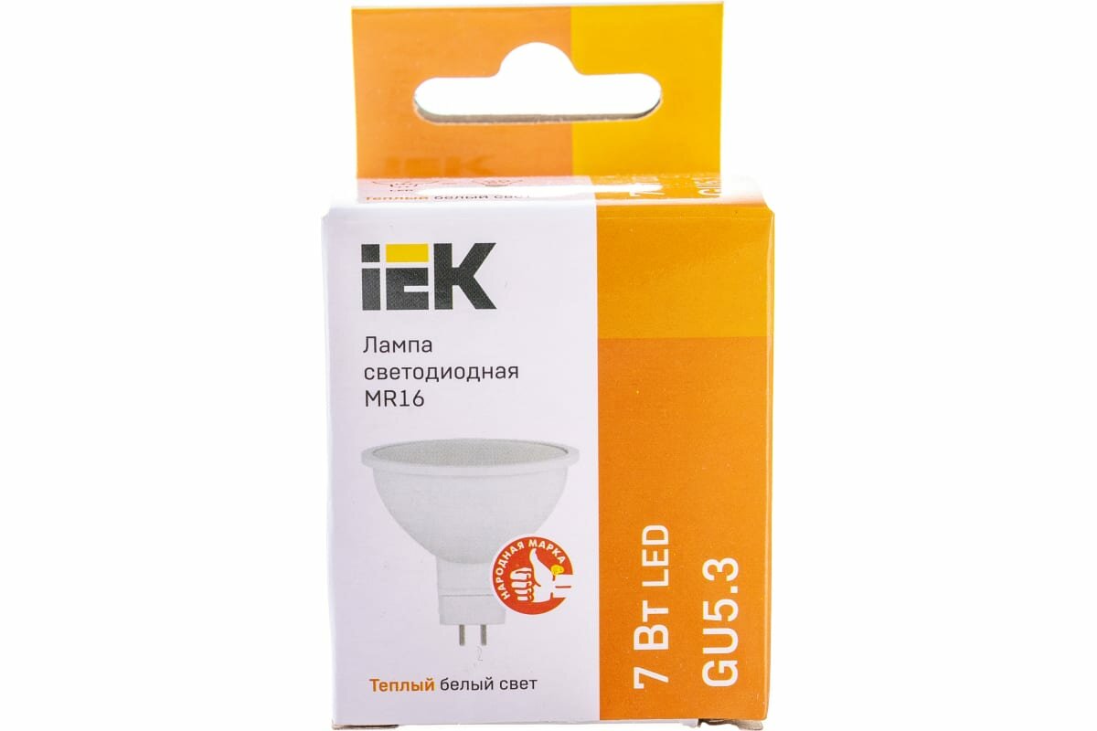 10шт/уп. Лампа LED Спот 7Вт 230B MR16 GU5.3 630Лм 3000К Свет Теплый белый арт. LLE-MR16-7-230-30-GU5 IEK, уп. 10шт