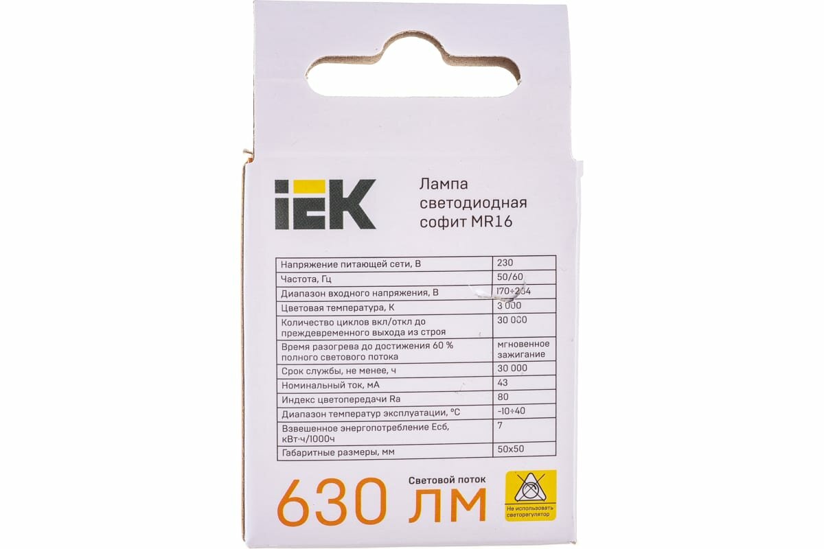 (16 шт.) Светодиодная лампочка IEK MR16 7Вт 230В 3000К GU5.3