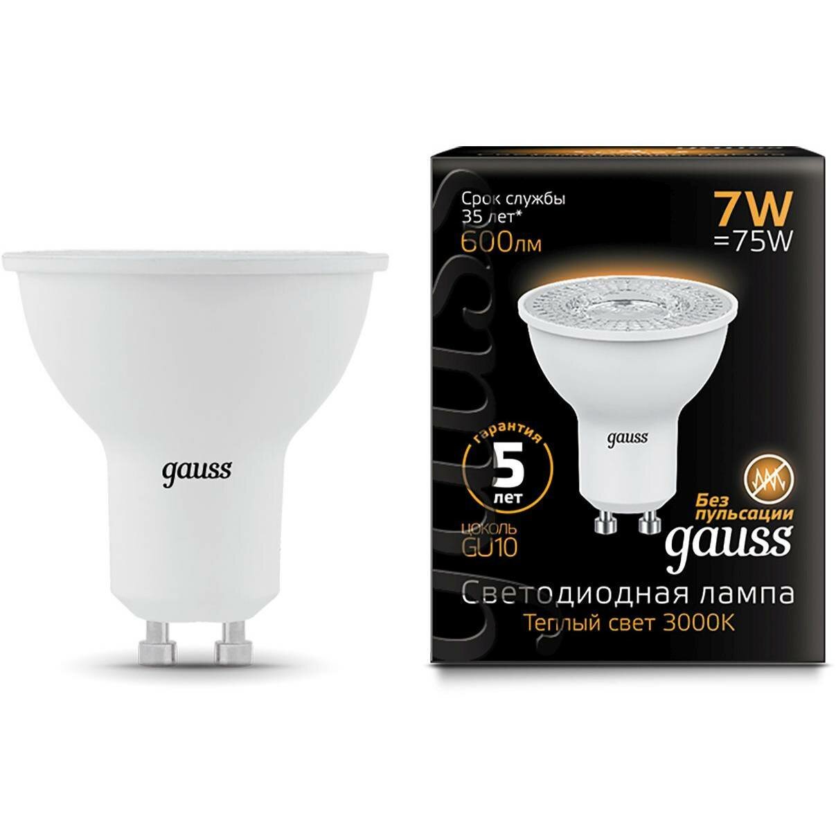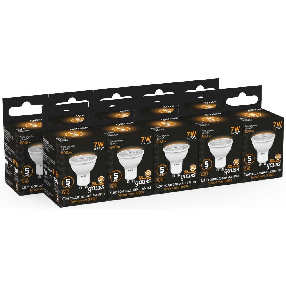 Упаковка ламп LED GAUSS GU10, рефлектор, 7Вт, 3000К, белый теплый, 10 шт. [101506107]