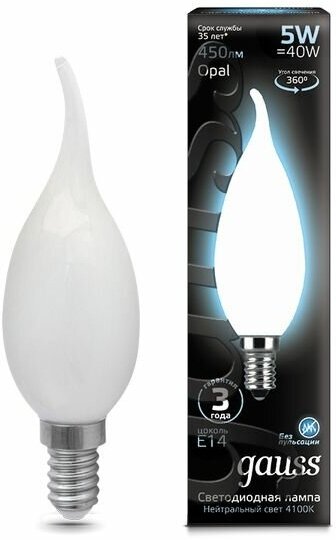 Светодиодная лампа GAUSS LED Filament Candle Tailed OPAL E14 5W 4100К (упаковка 10 шт)