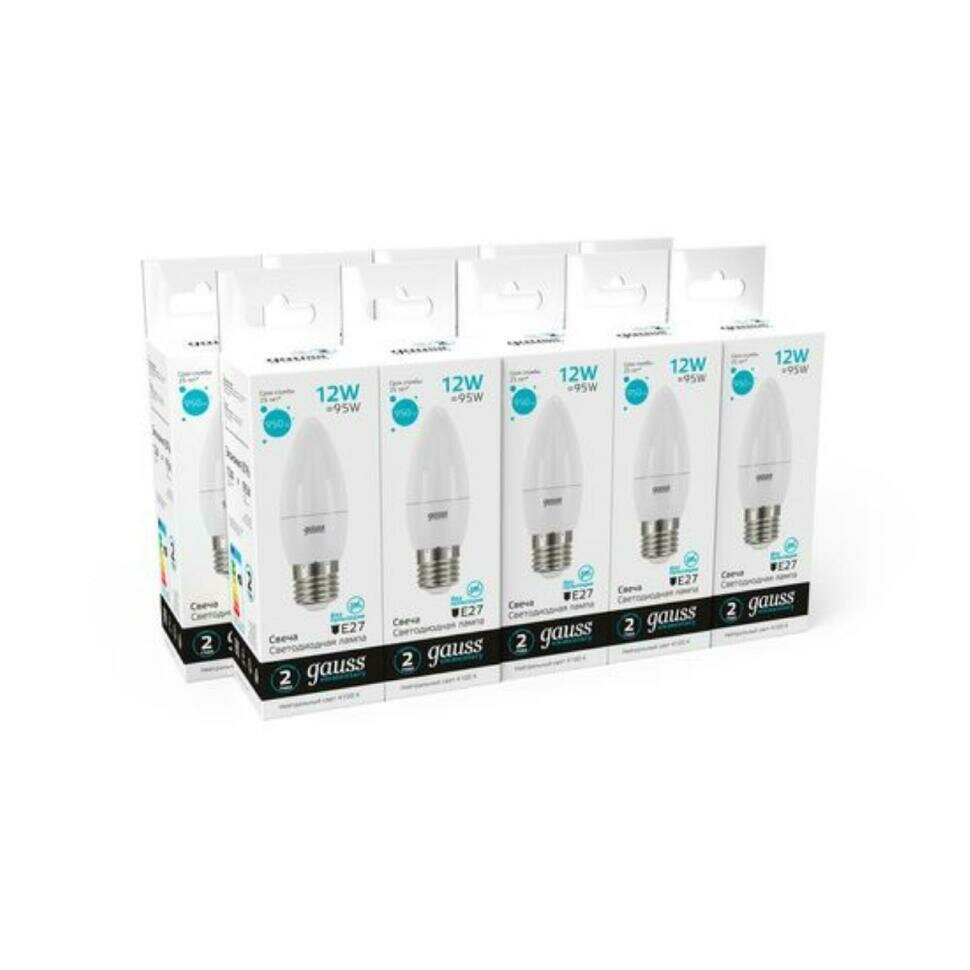 Лампа светодиодная LED 12 Вт 950 Лм белая 4100К E27 свеча Elementary Gauss () GAUSS 30222 (1 шт.)