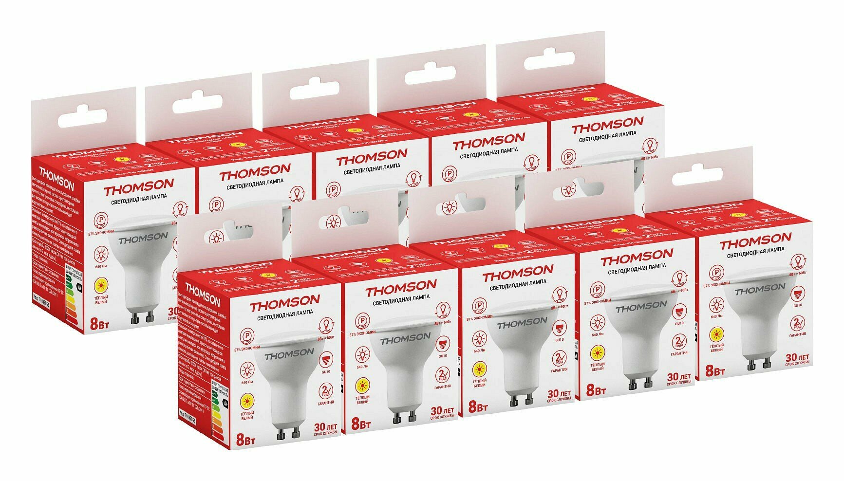 Лампа LED Thomson GU10, полусфера, 10Вт, 3000К, белый теплый, TH-B2055, одна шт.