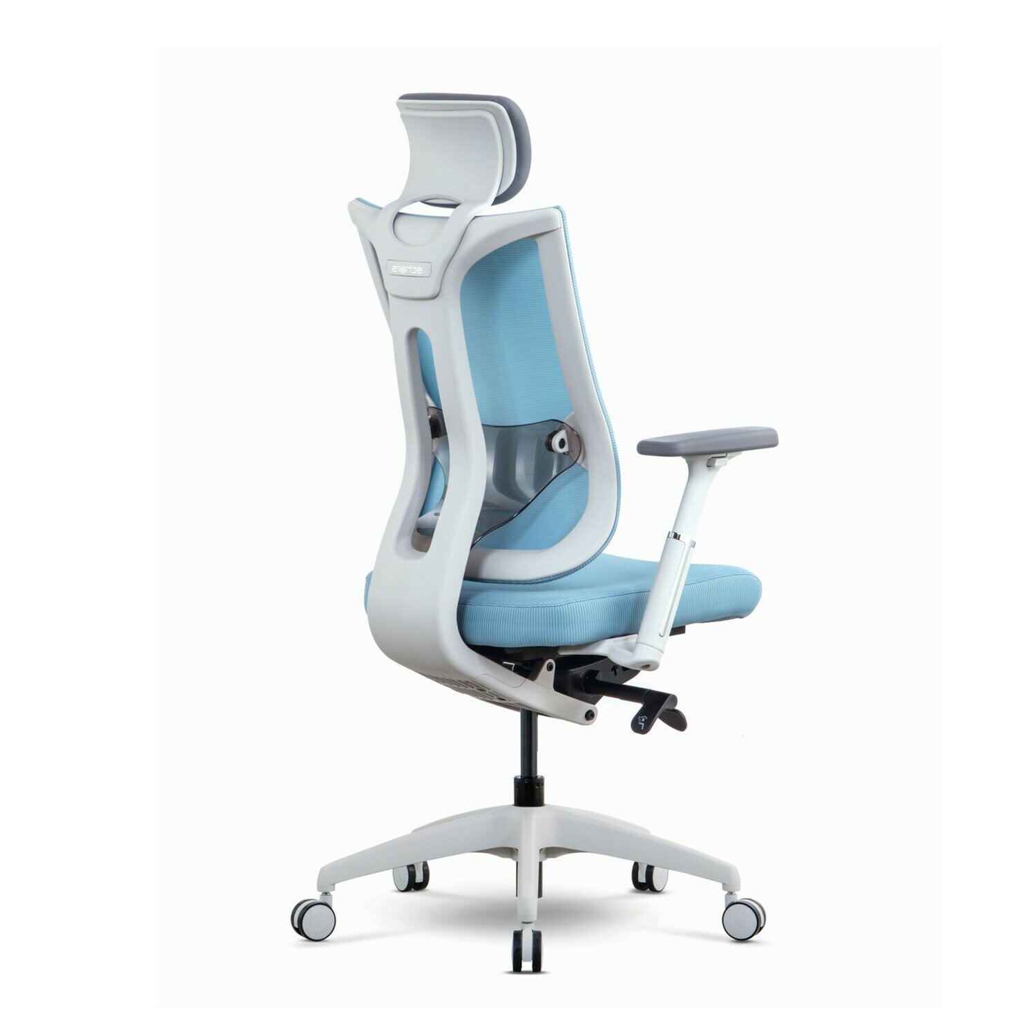 Эргономичное компьютерное кресло для офиса Schairs Tone-M01W (Южная Корея), с подголовником и поясничной поддержкой, регулировка высоты газлифт, синхронный механизм качания, обивка сетка голубой