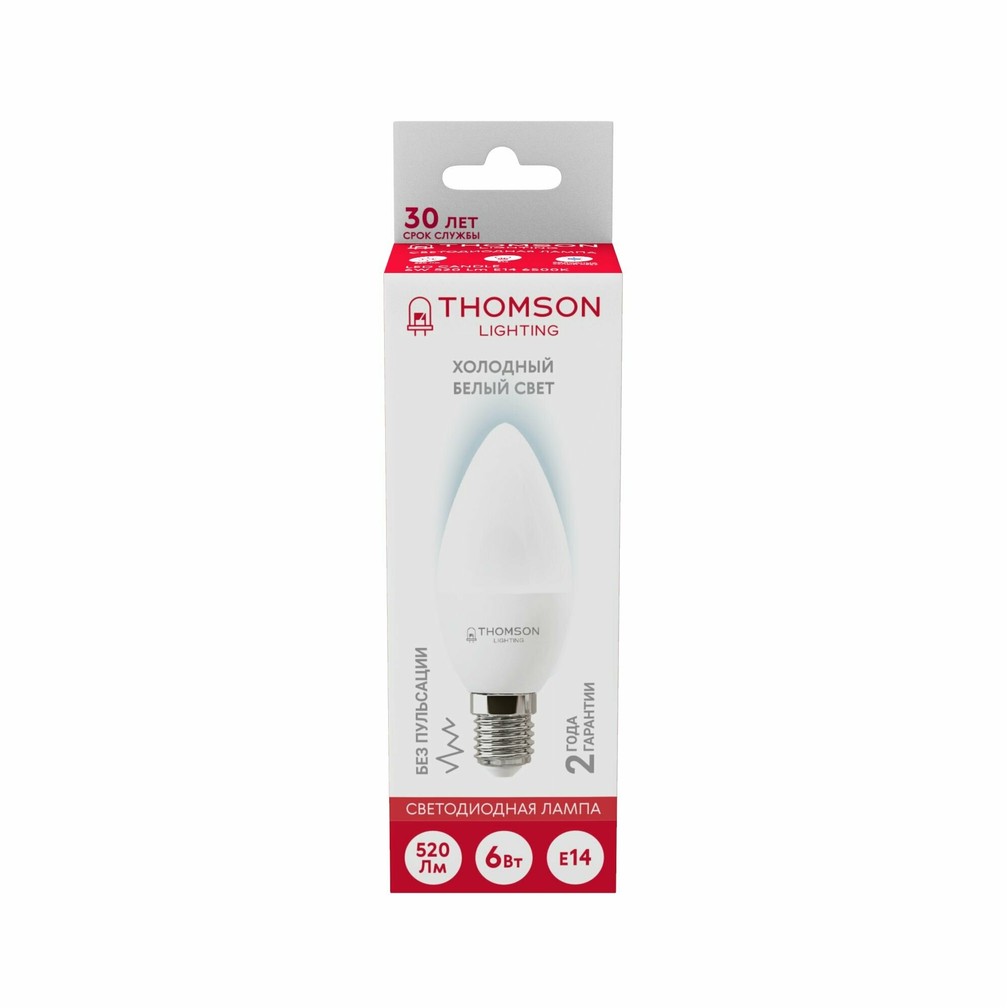 Лампочка Thomson TH-B2307 6 Вт, E14, 6500K, свеча, холодный белый свет