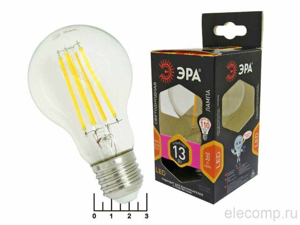 ЭРА F-LED A60-13W-827-E27 ЭРА (филамент, груша, 13Вт, тепл., Е27) (10/100/1500)