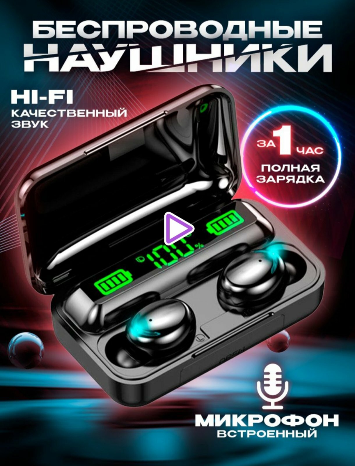 Беспроводные Bluetooth-наушники с функцией Power Bank. Блютуз наушники с микрофоном для смартфона / TWS наушники. интересное: