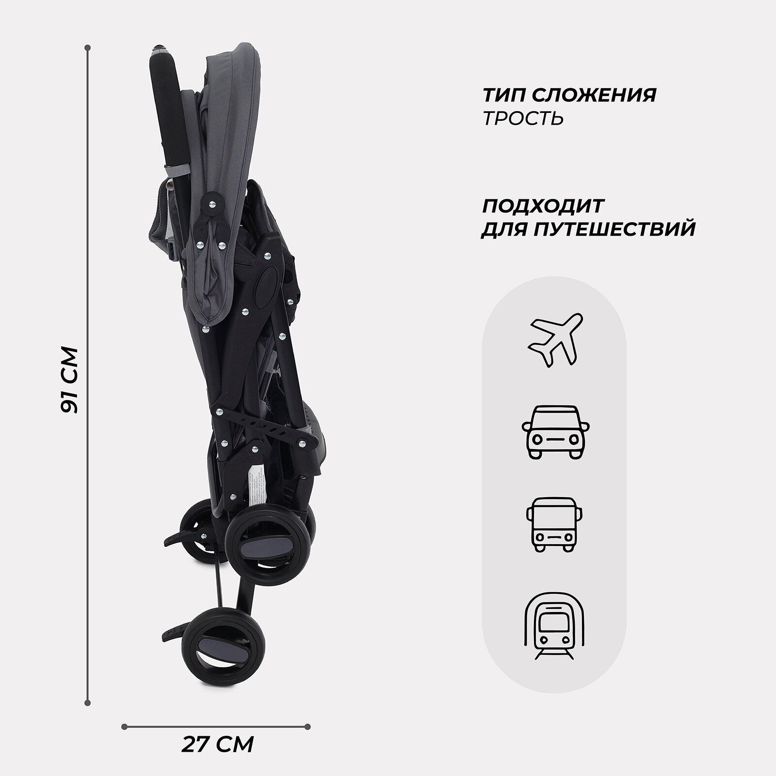| Размеры в собранном виде (ДxШxВ) | 91x45x27 см |