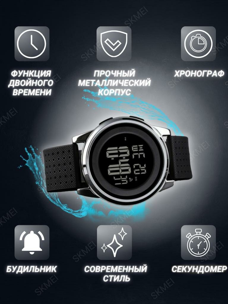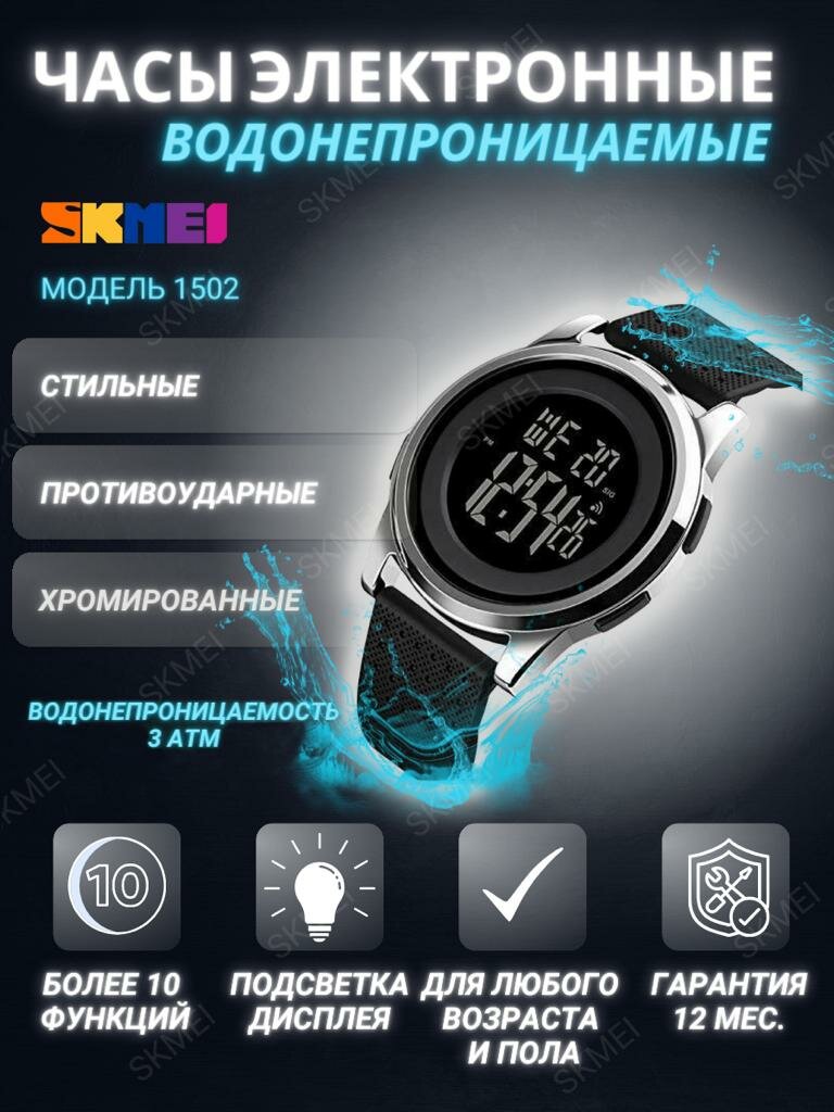 Часы наручные Skmei 1502, электронные, ультра тонкие, с секундомером, будильником, водонепроницаемые