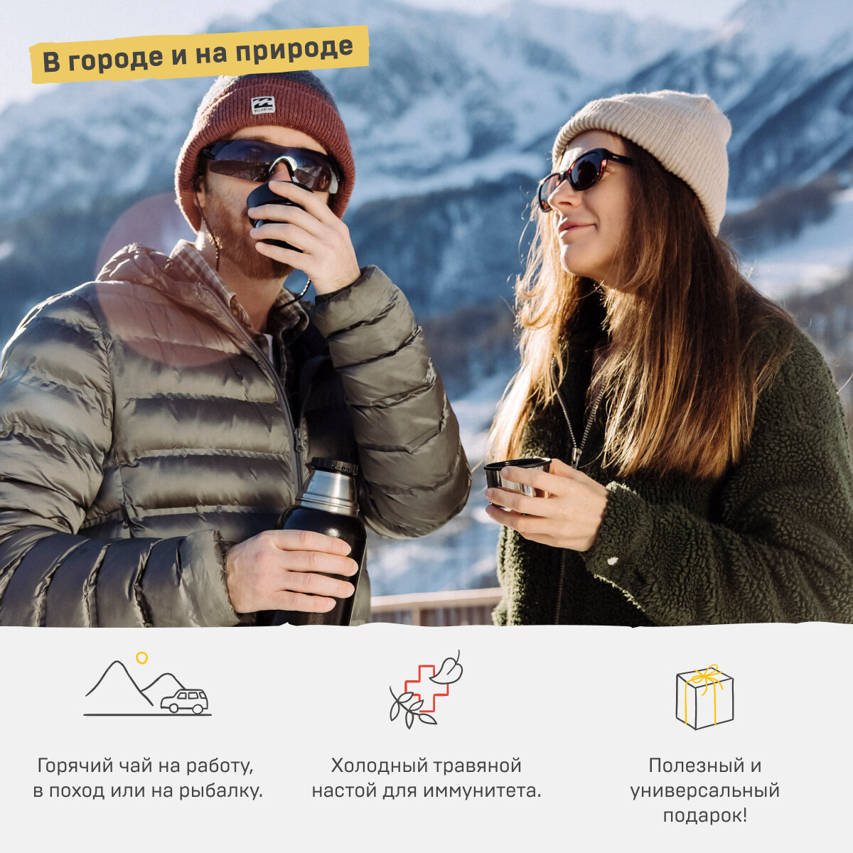 Термос сталь 0.75 л Арктика 106С с ситечком/для чая, кофе, воды/с двумя чашками в комплекте
