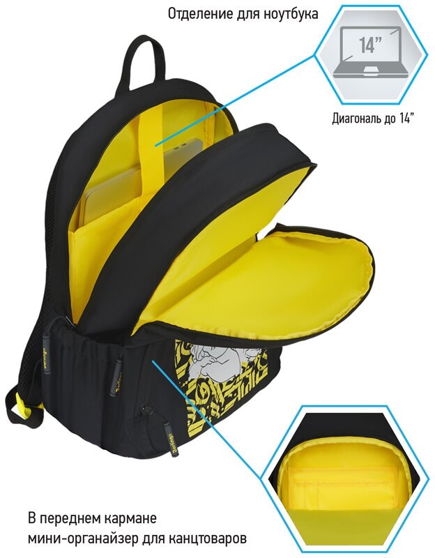 Рюкзак Berlingo RU08017 Light Angel black 2 отделения 3 кармана 39,5х28х16см