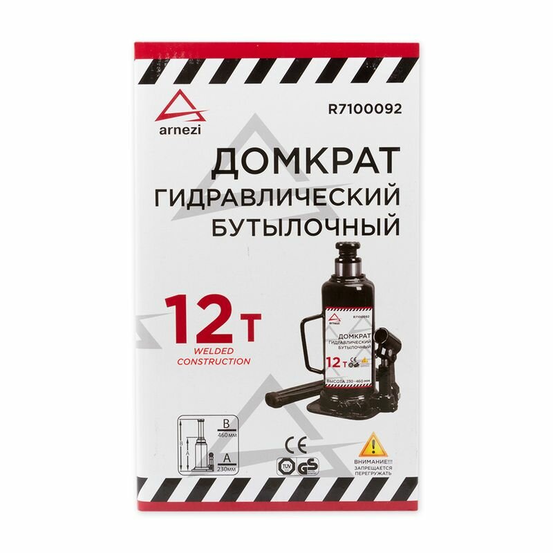 Домкрат гидравлический бутылочный 12 т. 230-465 мм. arnezi r7100092, ARNEZI R7100092 (1 шт.)