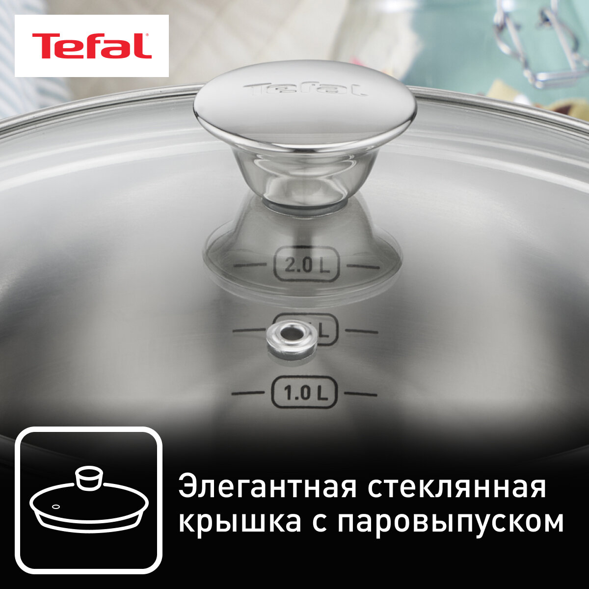 Купить Набор посуды из нержавеющей стали Tefal Cook Eat B922S955, 9 предметов, сковорода с антипригарным покрытием, кастрюли и ковши с крышками для газовых, электрических и индукционных плит