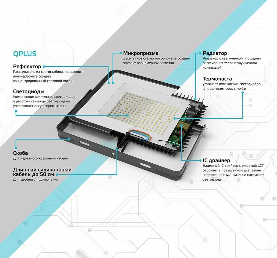 СохранитьПрожектор светодиодный LED до 70 Вт 7150 Лм 3000К IP65 191х164х31 мм Elementary, GAUSS 613527170 (1 шт.) интересное: