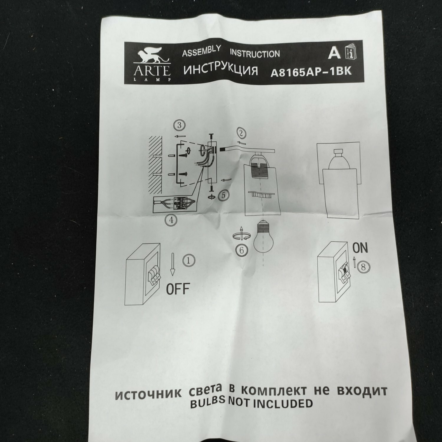 ARTE Lamp #ARTE LAMP A8165AP-1BK светильник настенный