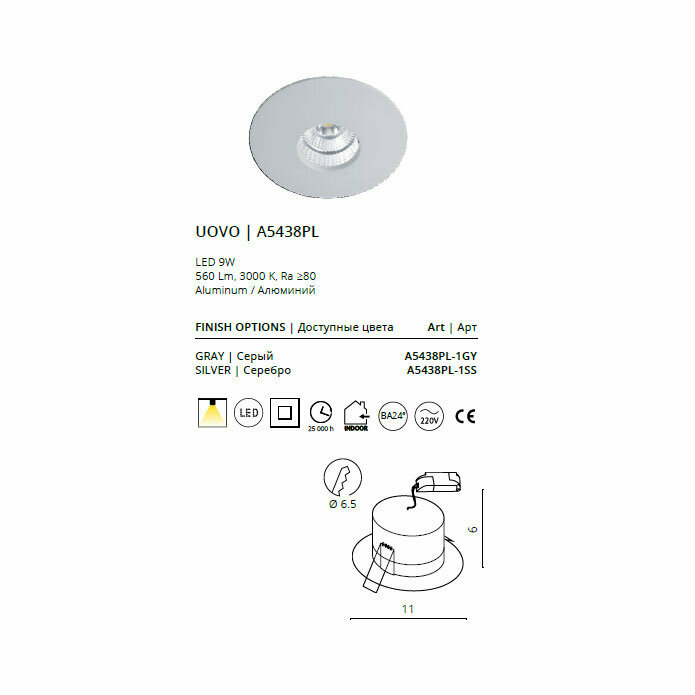 СохранитьСветильник встраиваемый UOVO A5438PL-1GY интересное: