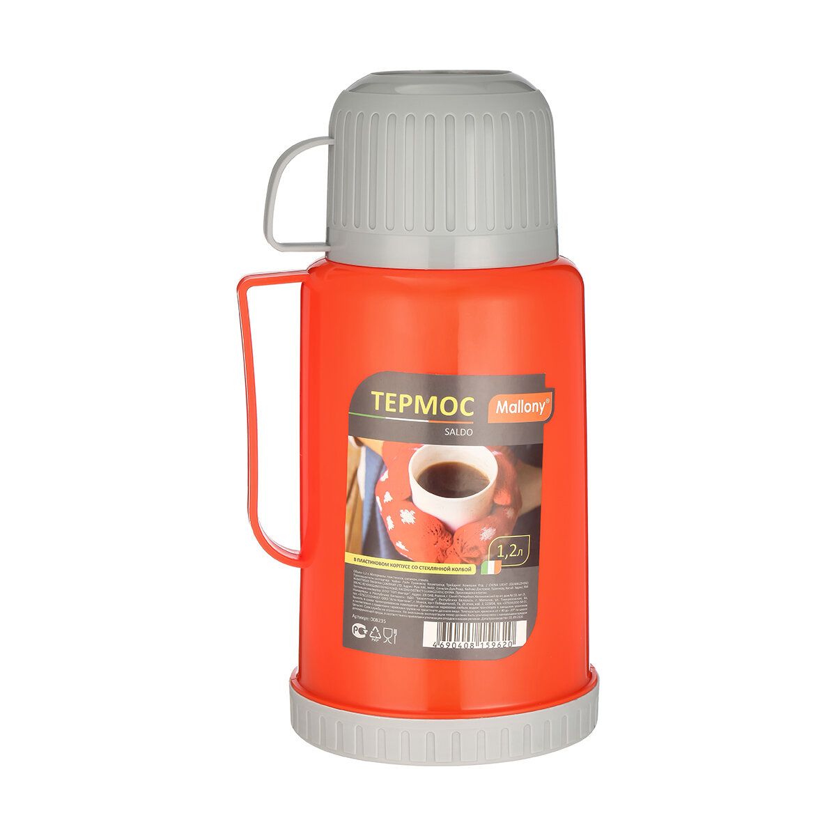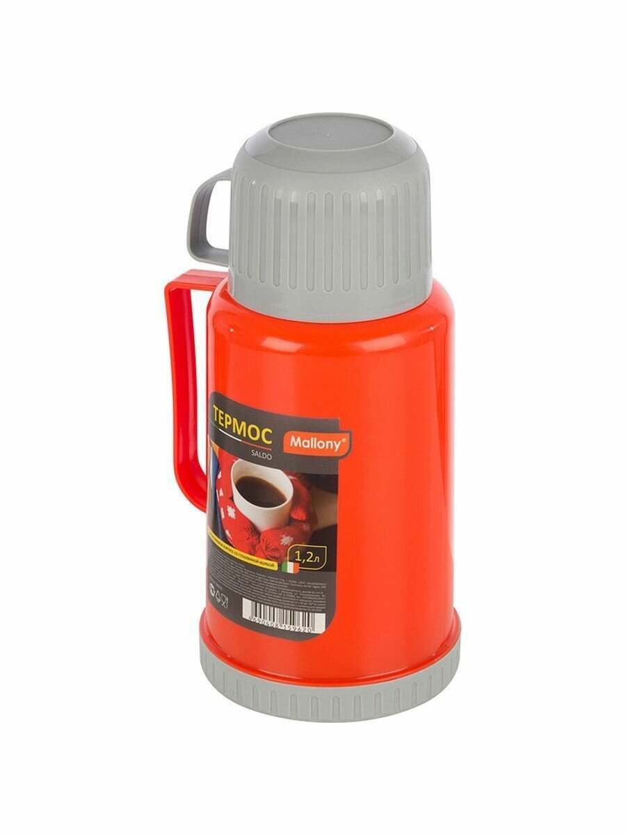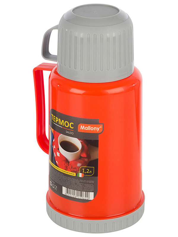 Термос SALDO 1,2л, стеклянная колба, пластик.корпус, 2чашки, 8235 Mallony