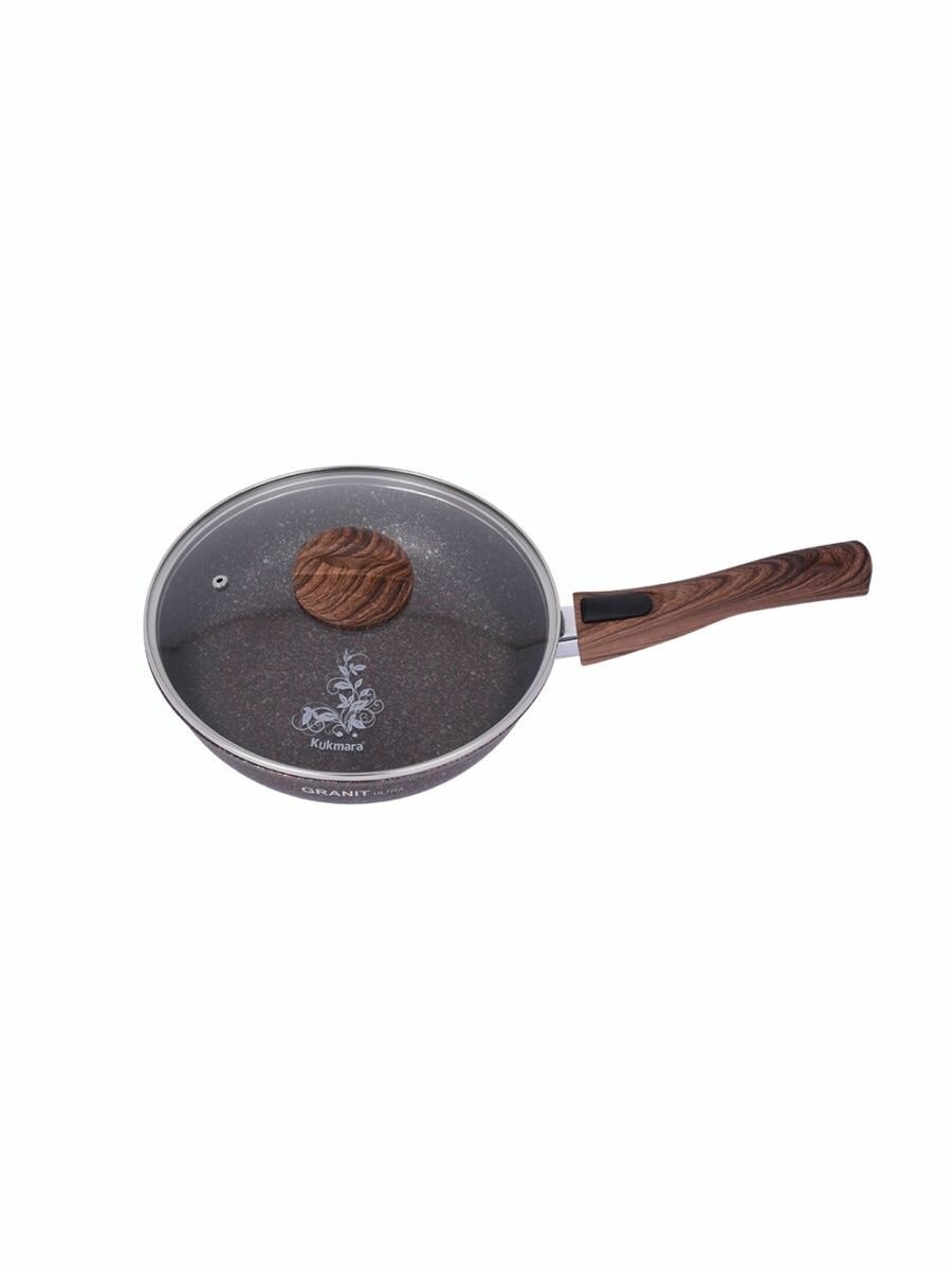 KUKMARA Сковорода Granit ultra, d26 см, стеклянная крышка, съёмная ручка, антипригарное покрытие