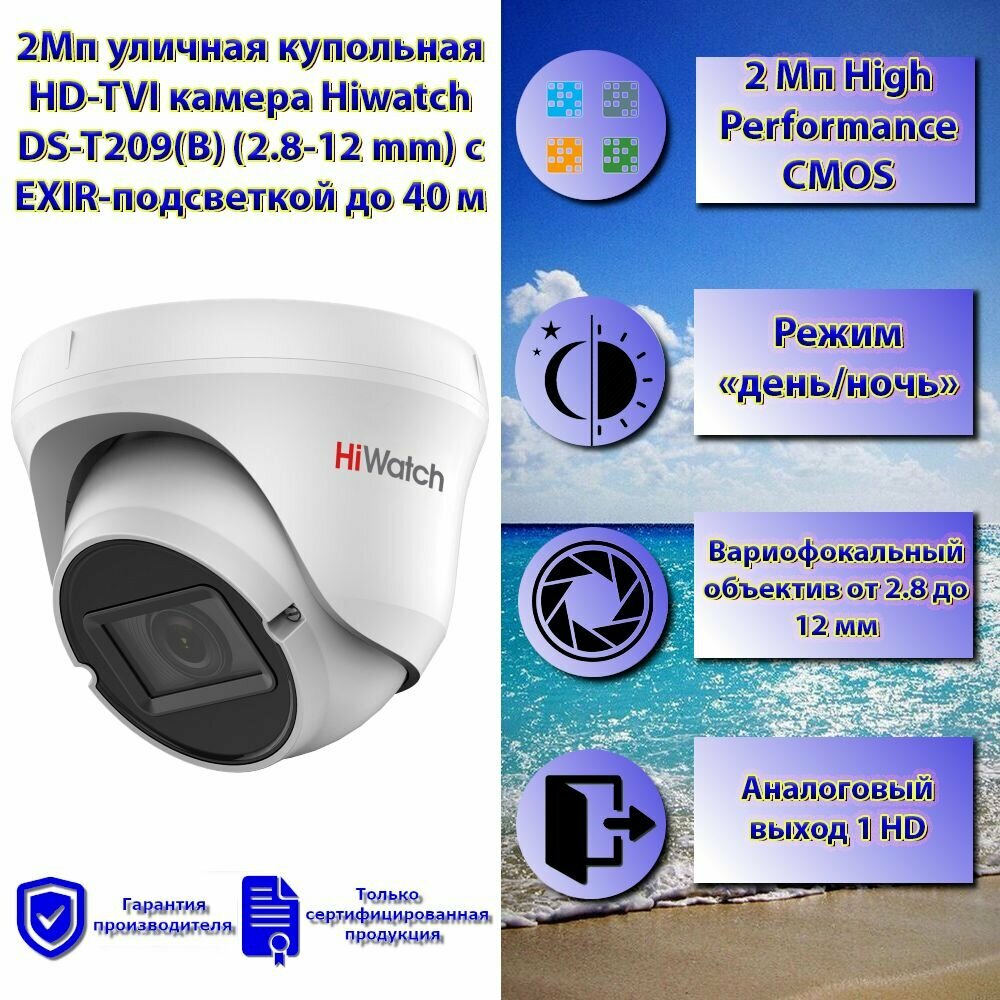 Купить 2Мп уличная купольная HD-TVI камера Hiwatch DS-T209(B) (2.8-12 mm) с EXIR-подсветкой до 40м