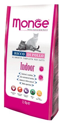 Сухой корм Monge Indoor для домашних кошек, курица, с рисом 1 уп. х 1 шт. х 1.5 кг