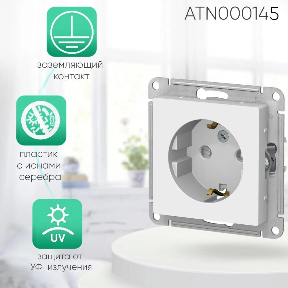 Розетка с заземляющим контактом, со шторками, механизм Монтаж: скрытой установки Цвет: белый Термопласт: антибактериальный, с ионами серебра (Schneider) Systeme Electric AtlasDesign ATN000145 комплект 10шт.