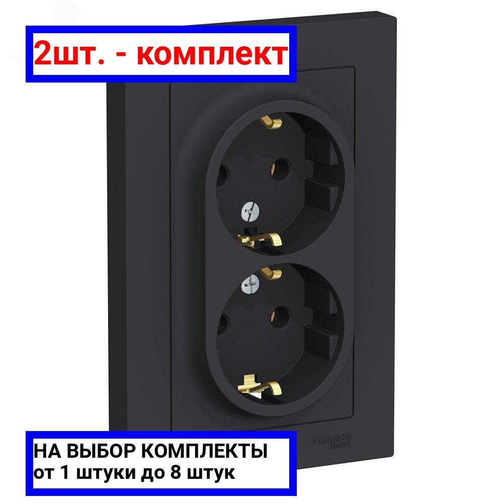 Розетка двухместная ATLASDESIGN, скрытый монтаж, с заземлением, карбон | код. ATN001024 | Schneider Electric (2шт. в упак.)