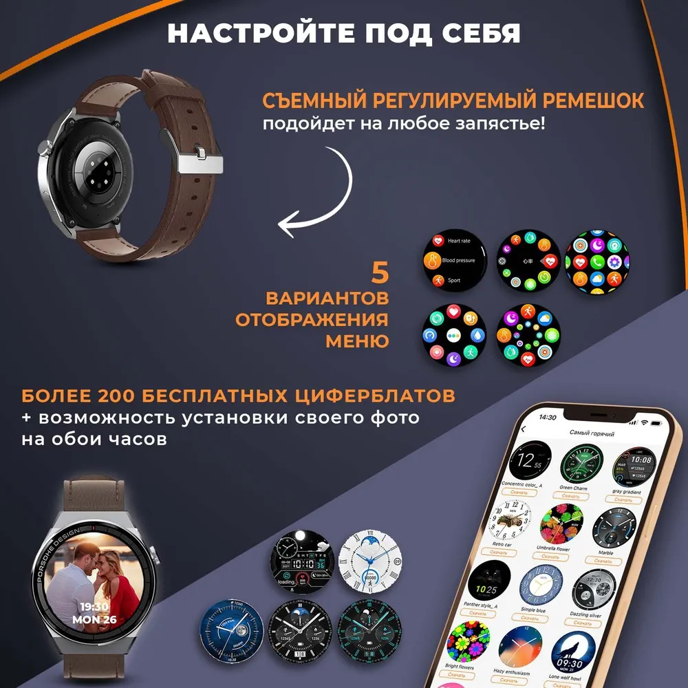 Очень много фитнес приложений! Можно ставить свои фото на циферблат, главное разобраться в приложении, и менять циферблаты через приложение,там большой выбор, чтобы скачать стандартные ! Всё легко и просто! Рекомендую продавца! Всё хорошо упаковано, в комплекте два ремешка, беспроводная зарядка. Я влюблена в эти часы! Купила себе и брату) |