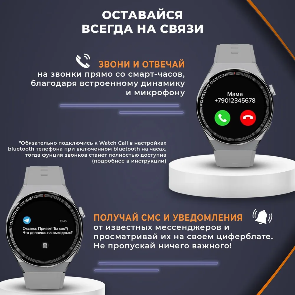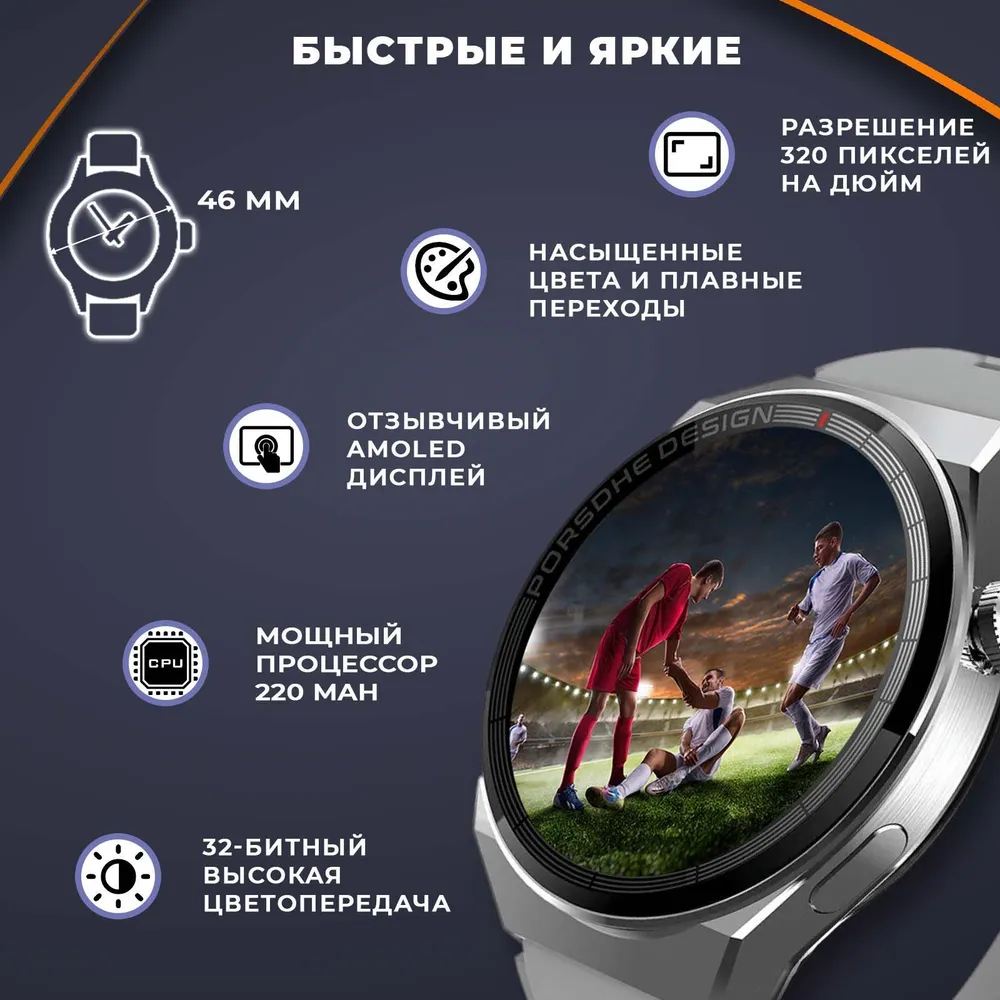 Умные смарт часы для мужчин и девушек Porsche Design X5, звонки, два ремня в комплекте, черные