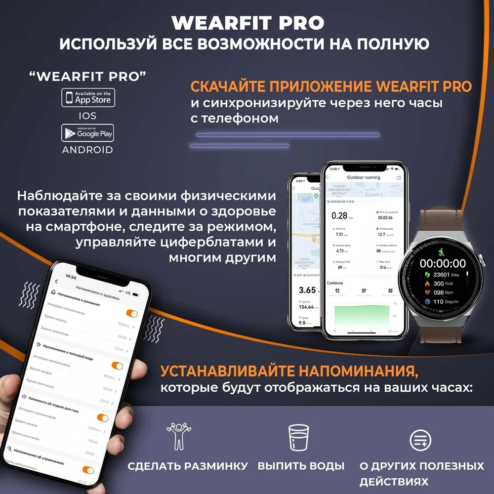Умные часы WearFit X5 Pro 46 мм GPS Global для РФ, черный..