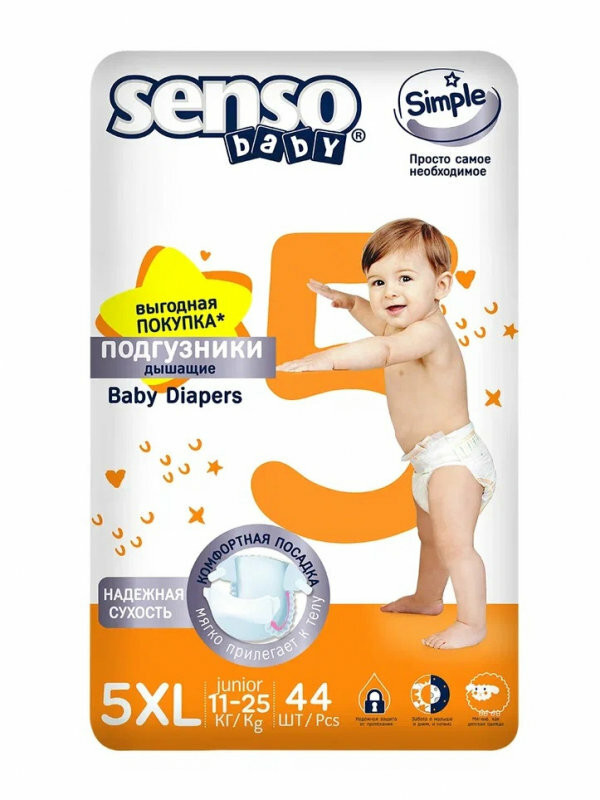 Подгузники детские Senso Baby Simple 5 XL JUNIOR (11-25 кг), 44 шт.