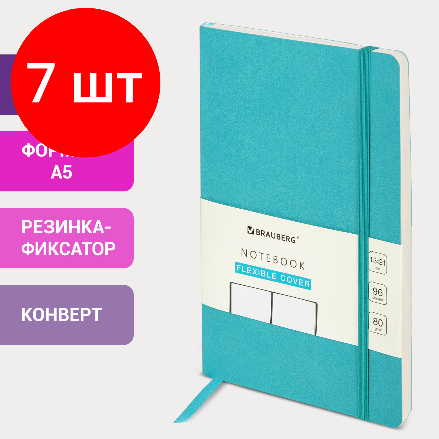 Купить Комплект 7 шт, Блокнот А5 (130х210 мм), BRAUBERG ULTRA, под кожу, 80 г/м2, 96 л., без линовки, бирюзовый, 113023