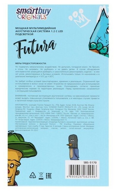 Портативная колонка Smartbuy FUTURA, 22Вт, Bluetooth, MP3, FM-радио, караоке