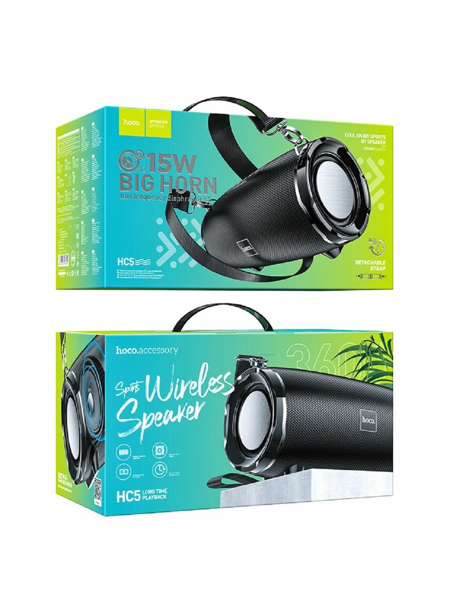 Портативная колонка Hoco HC5 Cool Enjoy, 3600мАч, 2 динамика 15Вт, BT 5.0, AUX, MicroSD, USB, FM, черная