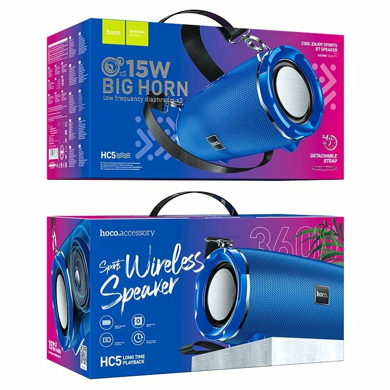 Портативная колонка bluetooth HOCO HC5 Cool Enjoy 2*15W, синяя