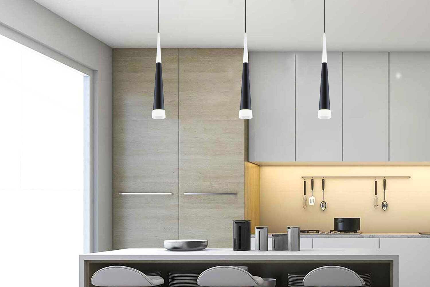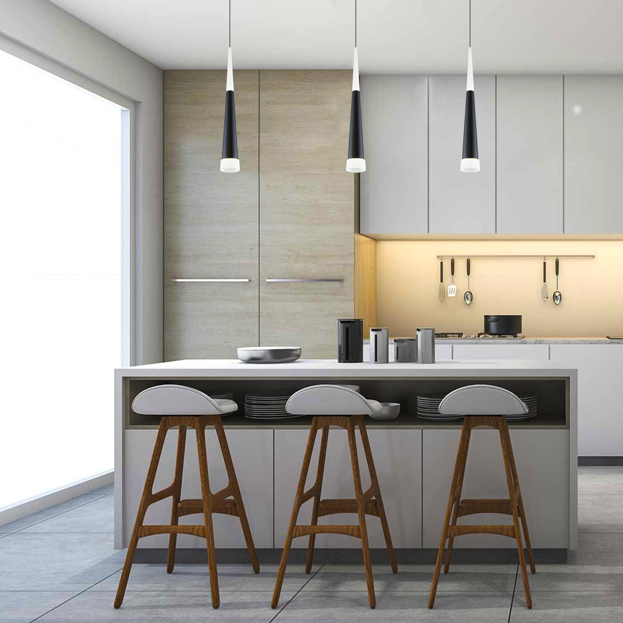 Подвесной светодиодный светильник DLR038 7+1W 4200K черный матовый