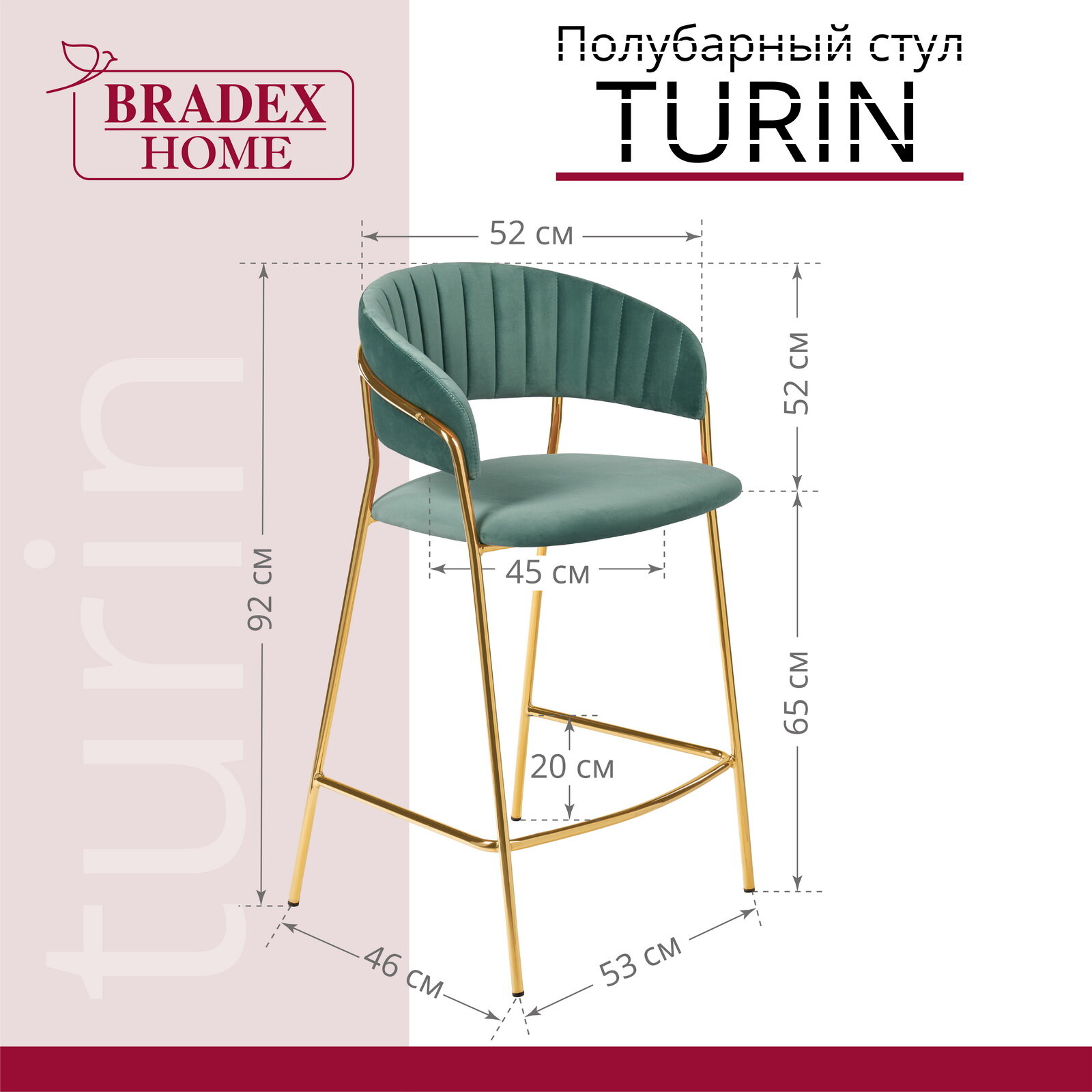 СохранитьСтул полубарный Bradex Home Turin мятный с золотыми ножками (FR0913) интересное: