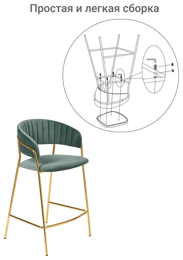 Стул полубарный Turin мятный с золотыми ножками / Стулья для кухни / Кухонные стулья со спинкой / Полубарные стулья / Барный стул / Мебель лофт