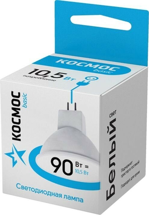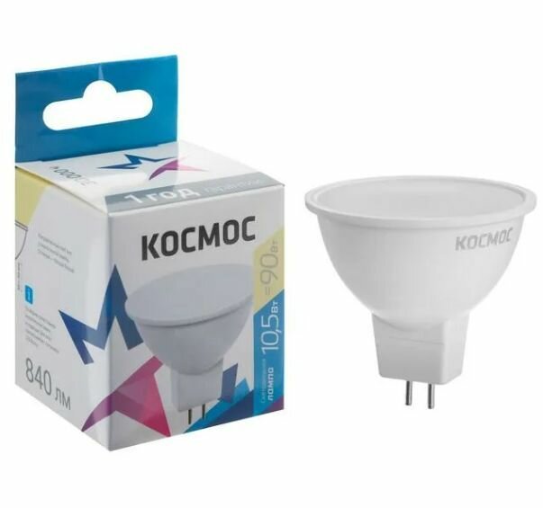 (10 шт.) Светодиодная лампочка Космос MR16 GU5.3 220V 10,5W (10W) (860lm) 4500K 4K матов. 45x50 LkecLED10.5wJCDRC45 . Цоколь GU5.3