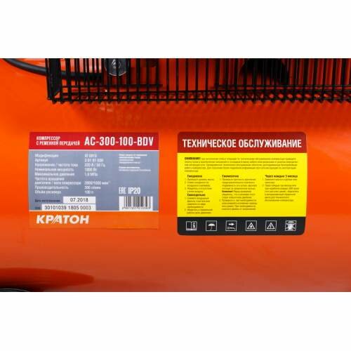 Масляный компрессор с ременным приводом Кратон AC-300-100-BDV, 3 01 01 039