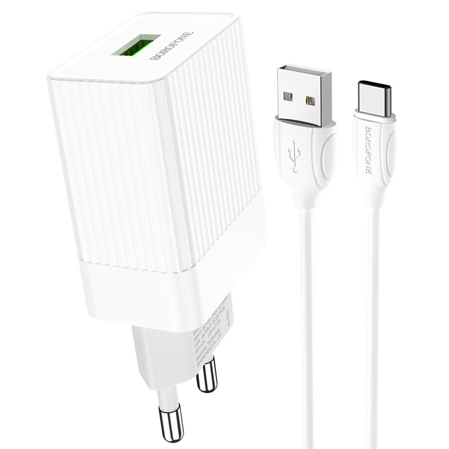 Сетевое зарядное устройство Borofone BA47A Mighty speed + кабель USB Type-C, 18 Вт, white