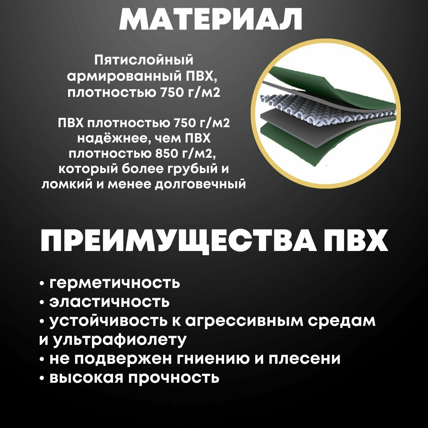 | Плотность ПВХ | 750 г/м2 |