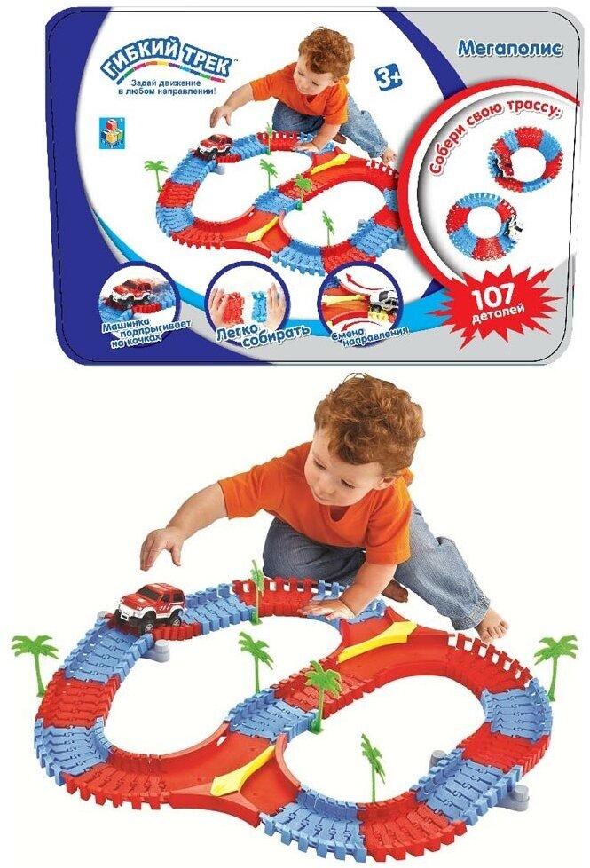 Игрушечный транспорт 1 TOY гибкий трек Мегаполис 107дет. (Т10553)