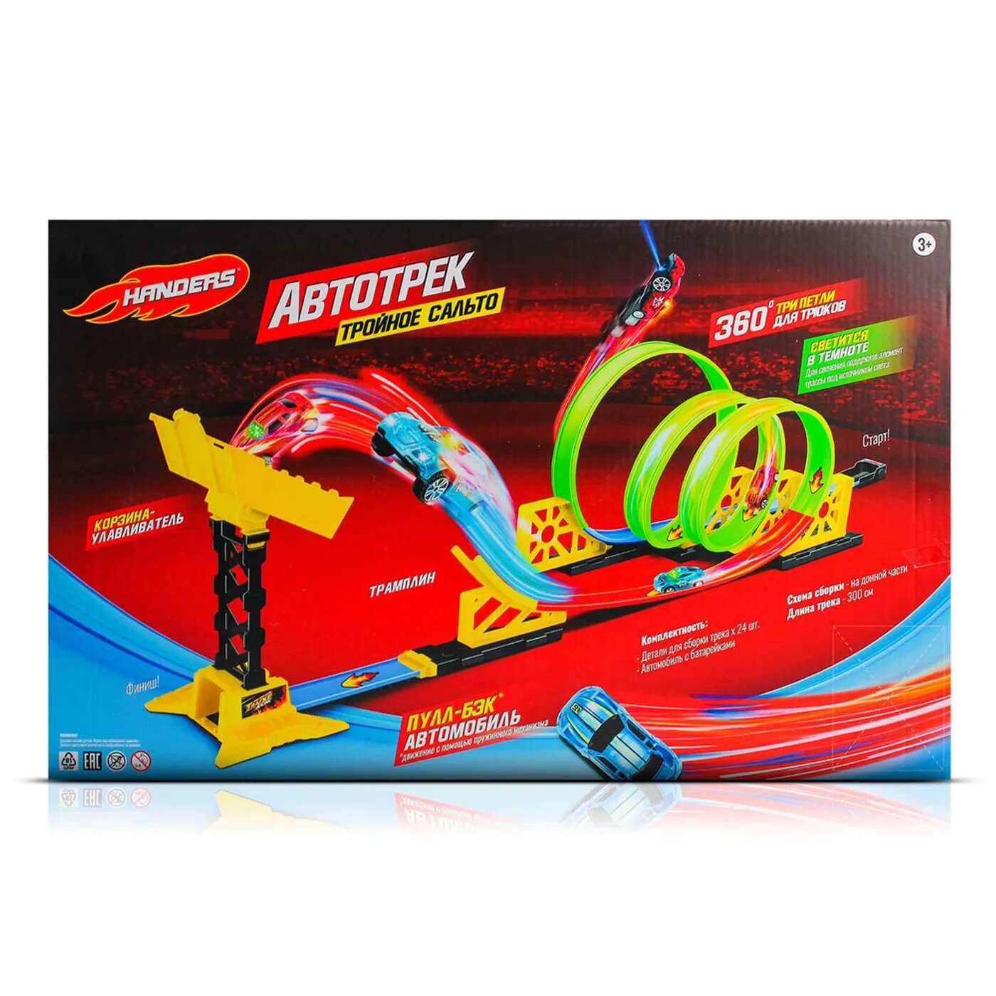 Игровой набор Handers "Автотрек: Тройное сальто" (светится, длин. трассы 300 см, 24 дет., светящ. ма