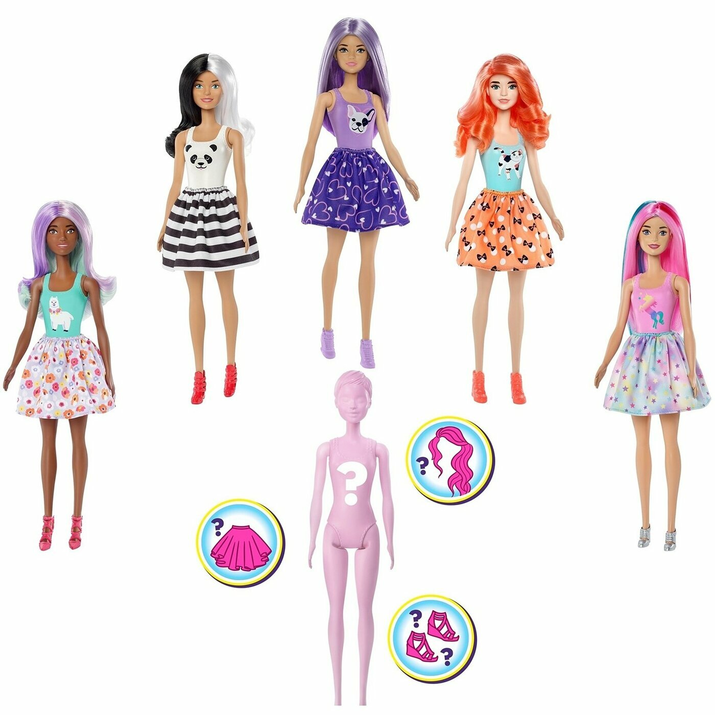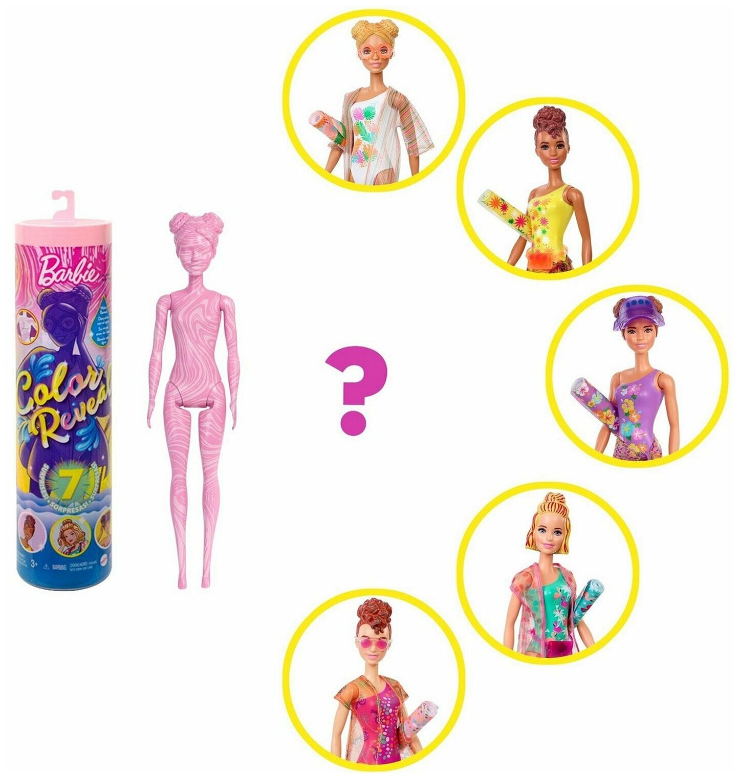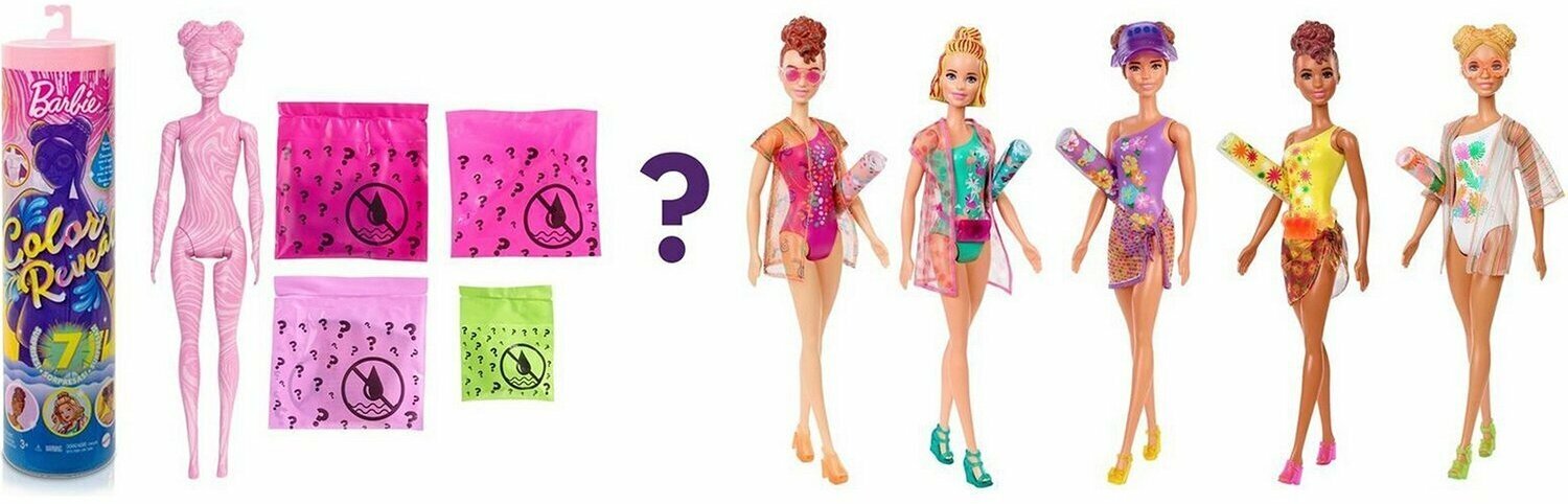 | Дополнительная информация | куклы Барби имеют различные комбинации цвета глаз, волос и декора купальника |