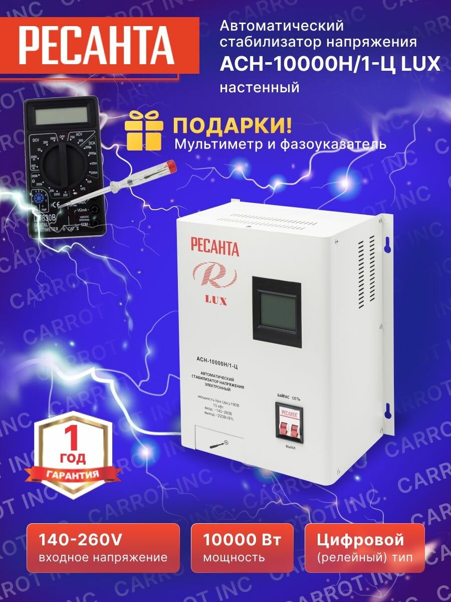 Стабилизатор напряжения АСН-10000 Н/1-Ц Lux 1ф 10кВт IP20 Ресанта 63/6/18 интересное:
